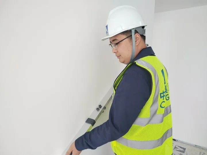 他的工作與瓷磚、膩?zhàn)印⑺啻蚪坏?,需要時(shí)刻手拿靠尺、角尺等檢測(cè)工具對(duì)項(xiàng)目乳膠漆墻面進(jìn)行實(shí)測(cè)實(shí)量;手拿空鼓錘對(duì)現(xiàn)場(chǎng)墻磚進(jìn)行空鼓排查,對(duì)每個(gè)部位全面排查、查找隱患,保證施工質(zhì)量。這樣的檢測(cè)動(dòng)作,每天要重復(fù)上千次,就是為了優(yōu)質(zhì)履約,為業(yè)主提供一個(gè)安全住所。