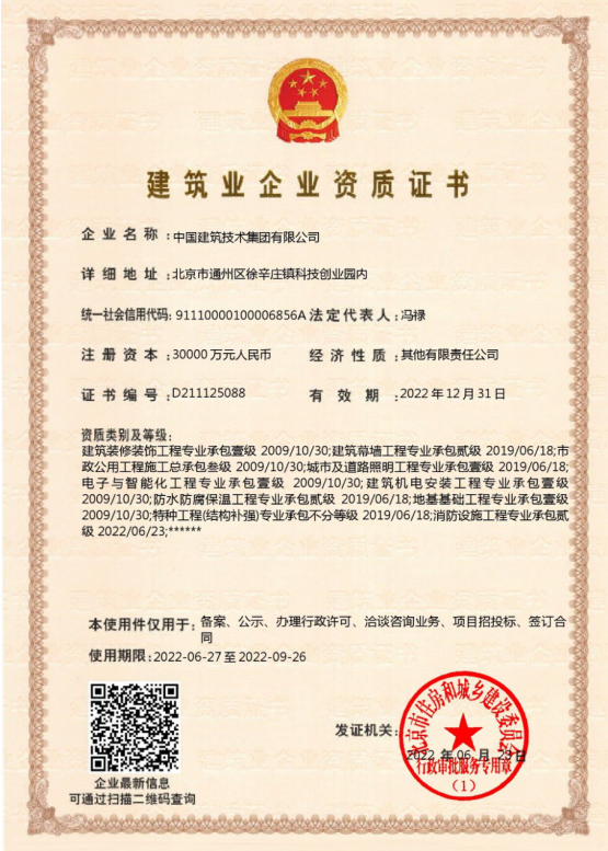 ?6月23日,經(jīng)北京市住房和城鄉(xiāng)建設(shè)委員會核準,中技集團獲批消防設(shè)施工程專業(yè)承包二級資質(zhì)。該資質(zhì)的獲批,成為中技集團落實“十四五”規(guī)劃精神,打造全產(chǎn)業(yè)鏈平臺優(yōu)勢的又一可喜成果。