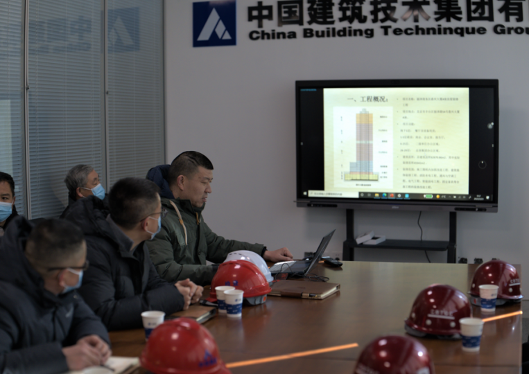 中技集團第二工程分公司副總經(jīng)理韓玉文對鼎興大廈工程裝修項目概況和項目生產(chǎn)進度情況進行了匯報,中國建研院和中技集團領(lǐng)導(dǎo)一行詳細了解了項目特色、施工進度、安全管理及質(zhì)量管控情況,并對項目部目前的整體管理給予肯定,同時就項目建設(shè)、安全生產(chǎn)、疫情防控等重點工作提出要求。