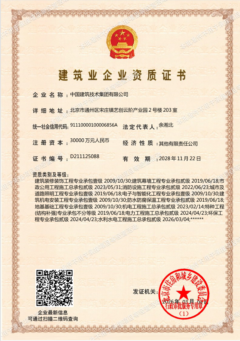 未來,中國建技將以新資質(zhì)為新起點(diǎn),開拓水利水電領(lǐng)域,強(qiáng)化技術(shù)創(chuàng)新、嚴(yán)守安全質(zhì)量、提升履約能力,以專業(yè)品質(zhì)打造精品工程,在服務(wù)國家重大戰(zhàn)略、助力城鄉(xiāng)建設(shè)與生態(tài)文明建設(shè)中展現(xiàn)新作為、再創(chuàng)新佳績!