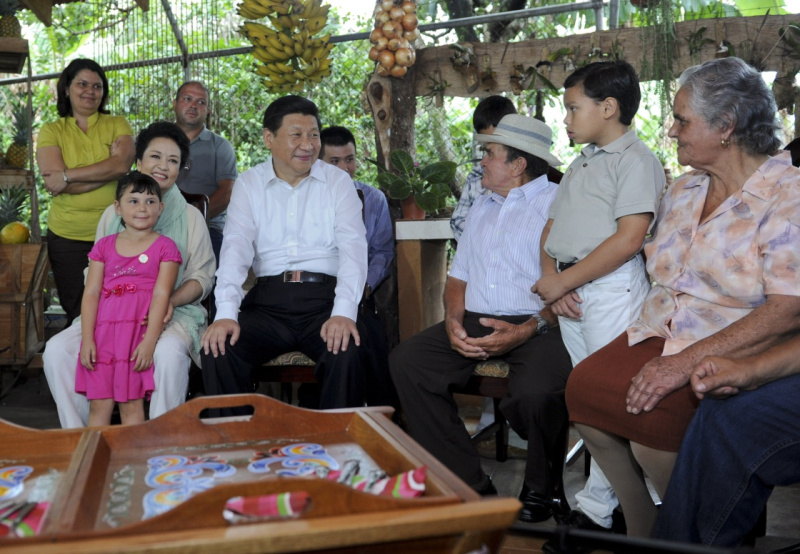 2013年6月3日,習近平和夫人彭麗媛走訪哥斯達黎加埃雷迪亞省圣多明哥小鎮(zhèn)農戶薩莫拉一家,與薩莫拉一家人親切交流。