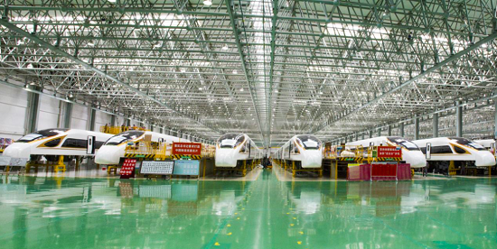 ▲中車長(zhǎng)客“復(fù)興號(hào)”中國(guó)標(biāo)準(zhǔn)動(dòng)車組裝配現(xiàn)場(chǎng)