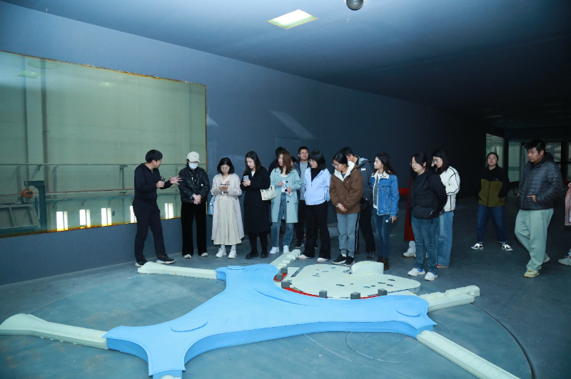 進入實驗室,首先映入眼簾的是藍綠相間的巨大“喇叭”,也是今天的“主角”——建筑風洞。“此風洞長96.5米,是直流下吹式大氣邊界層風洞,此風洞可以進行多項科學試驗,為保證建筑的安全性和舒適性提供強大的‘后盾’?!痹谘υ┦康膸ьI下,參觀人員來到“喇叭口”了解風洞動力段的運行原理,近距離看到風扇葉片的構造。沿著風洞,接著來到中間的穩(wěn)定段,參觀人員深入了解風洞內部蜂窩器和阻尼網(wǎng)的構造和重要作用。經(jīng)過風洞的兩個實驗段,最后來到擴張段,在這里風可以以更低的速度被排出。在專家的講解下,風洞每一段構造的科學秘密被逐漸揭開,參觀人員感受到建筑安全背后“科技屏障”的力量。