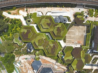 近年來,新加坡注重應對氣候變化,不斷提高建筑的環(huán)境可持續(xù)標準,對綠色建筑標志認證設置了最高等級——綠色標志白金獎。三巴旺綜合社區(qū)中心項目以取得綠色標志白金獎為目標,將綠色環(huán)保理念貫穿于項目設計和施工的各個環(huán)節(jié)。中心的建筑屋頂實現(xiàn)了無土植物全覆蓋,在新加坡常年炎熱的氣候下,這種設計不僅外觀上綠意盎然,還可以起到降溫、吸音、降噪等作用;園林區(qū)域的降雨排水系統(tǒng)運用石塊、碎石、植物等天然材料,將雨水匯集起來并層層過濾沉降泥沙,營造出天然河道景象,既美觀又能凈化水源;項目還采用了大量預制構件,雖然對施工精度提出了很高的要求,但可以最大程度減少施工中產(chǎn)生的建筑垃圾。