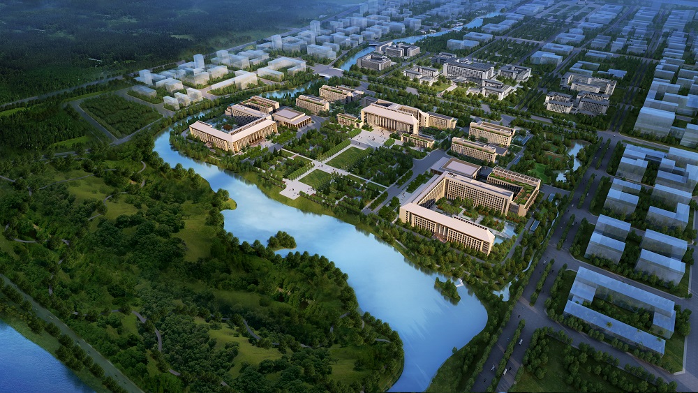 該項目位于北京城市副中心行政辦公區(qū)的核心區(qū)域,在長安街的東延長線上,運潮減河與北運河之間,將成為北京中心城區(qū)功能疏解的重要承接地。行政辦公區(qū)景觀結(jié)構(gòu)為:一條生態(tài)軸貫穿南北,由豐字溝水系和建筑公共綠地組成環(huán)抱行政辦公核心區(qū)的生態(tài)圍合,整體形成全區(qū)山水結(jié)構(gòu)與自然式的園林景觀。