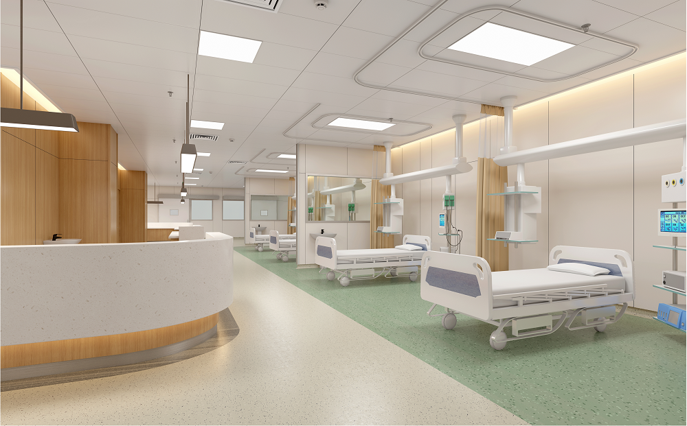 項目規(guī)劃中包括建立一間雜交一體化手術室,同時在手術部門設置7間Ⅰ級手術室和11間Ⅲ級手術室,以及5間DSA手術室。此外,還配備了40張ICU病床,以及若干供應室和輔助用房。