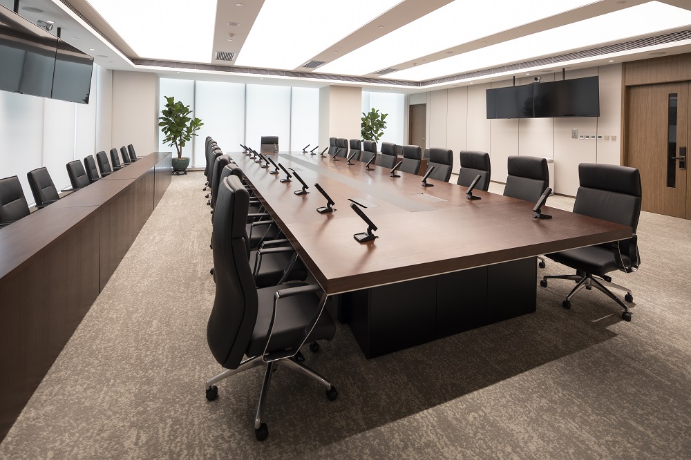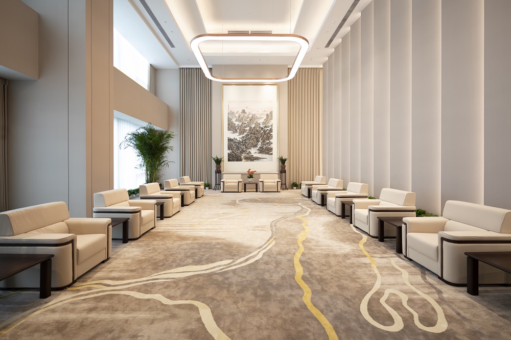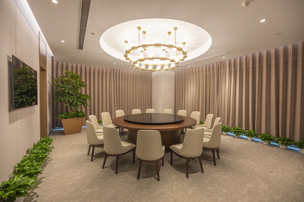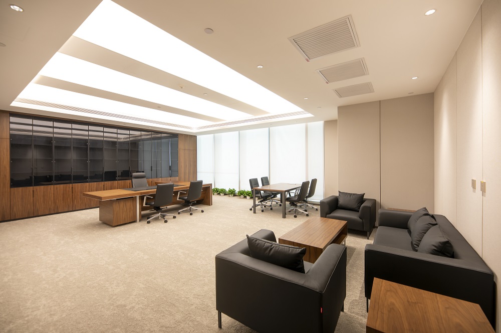 本次改造根據(jù)使用單位的需求,在維持建筑外立面和室外景觀的前提下,對原有建筑進(jìn)行了平面重新布局及裝飾裝修,并根據(jù)新的使用功能對機(jī)電系統(tǒng)進(jìn)行了調(diào)整。改造后的建筑滿足現(xiàn)行的建筑標(biāo)準(zhǔn)規(guī)范,并滿足使用方的現(xiàn)代辦公需求。以“一級央企、國內(nèi)一流、具有國際影響力”的大國企業(yè)總部形象服務(wù)全國并面向國際舞臺,所以重點(diǎn)打造莊重、現(xiàn)代、統(tǒng)一、大氣、低調(diào)、品質(zhì)的空間特點(diǎn),使辦公空間代表大國形象、展示央企文化;延續(xù)傳統(tǒng)國企表現(xiàn)出的典型特征,提升內(nèi)部空間整體品質(zhì)。圍繞設(shè)計理念構(gòu)思方案,把握規(guī)劃布局的宏觀標(biāo)準(zhǔn),定位企業(yè)形象,提煉設(shè)計手法,營造空間氛圍;對大廳、會議、報告廳、會客、餐廳、辦公等重點(diǎn)空間深化設(shè)計匹配一級央企的總部形象。