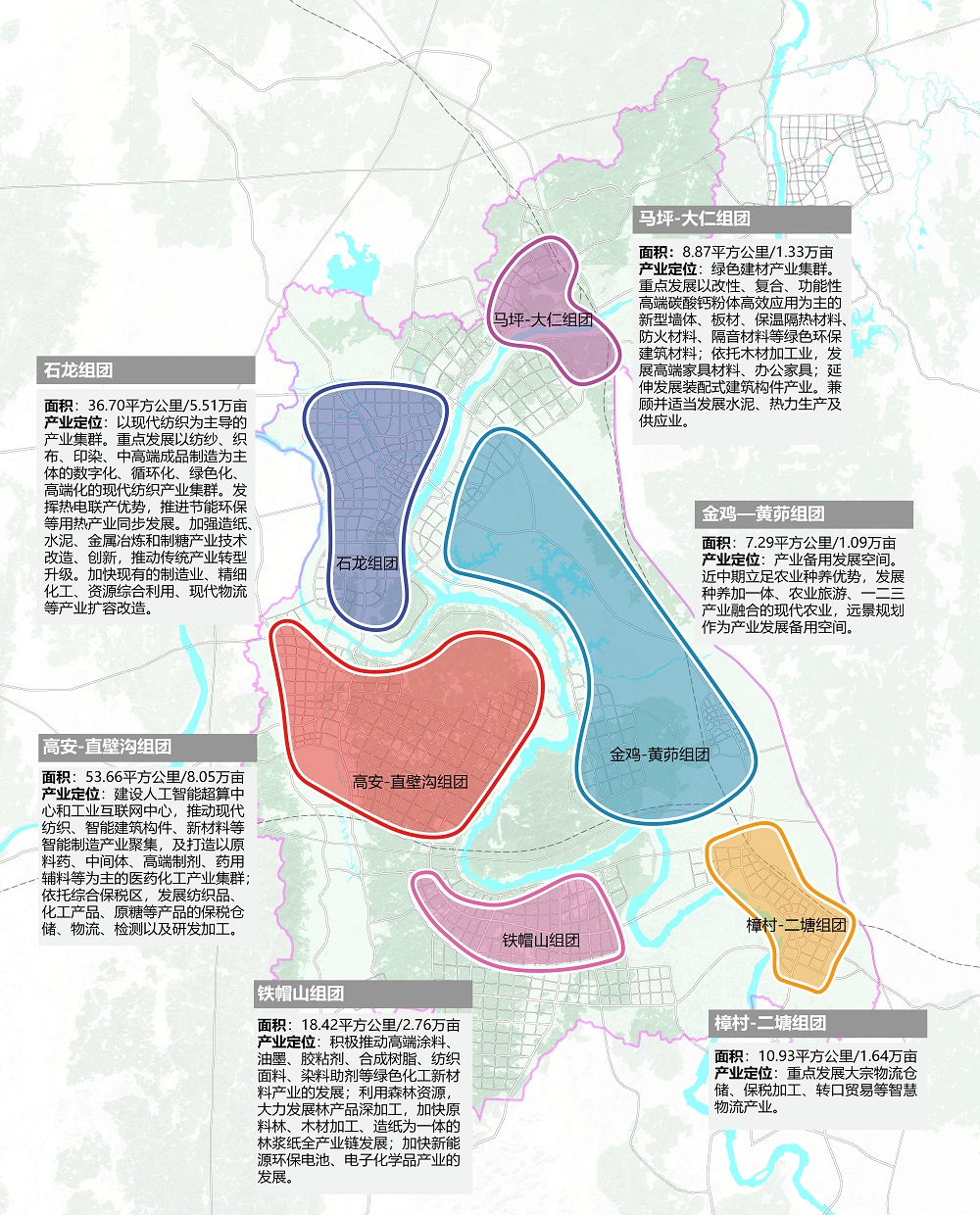 特色產(chǎn)業(yè)集群布局——綜合考慮自身優(yōu)勢資源、臨港產(chǎn)業(yè)基本形態(tài)、大灣區(qū)產(chǎn)業(yè)外溢、上位政策與規(guī)劃導(dǎo)向等影響因素的基礎(chǔ)上,三江口新區(qū)的產(chǎn)業(yè)選擇按照“灣區(qū)所需、來賓所長”和“來賓所缺、灣區(qū)所溢”的思路進(jìn)行取舍,重點打造綠色建材、現(xiàn)代紡織、醫(yī)藥化工、林漿紙一體化、新能源新材料、智慧物流六大產(chǎn)業(yè)集群。