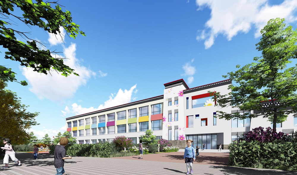 幼兒園建設(shè)響應(yīng)國家相關(guān)政策,為幼兒提供獨具特色空間的環(huán)境,堅持美觀的同時,又能滿足使用功能的合理性。整體設(shè)計以現(xiàn)代簡潔的處理手法,在充分考慮經(jīng)濟(jì)及美觀性的前提下,體現(xiàn)藏區(qū)建筑特色。立面采用虛實結(jié)合的處理手法,以橫向線條體聯(lián)系建筑各個部分,強(qiáng)調(diào)活動單元體量,創(chuàng)造富有秩序的立面節(jié)奏,通過明確的進(jìn)退關(guān)系區(qū)分各功能區(qū)塊的轉(zhuǎn)換,塑造強(qiáng)烈的光影變化,為孩子提供自由靈活的生活活動場所。