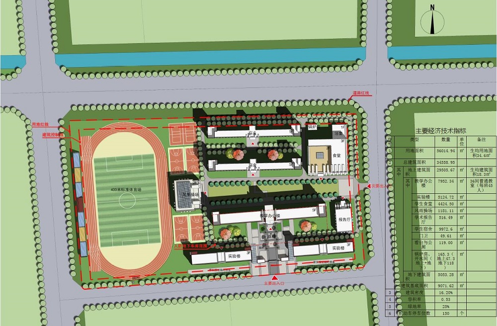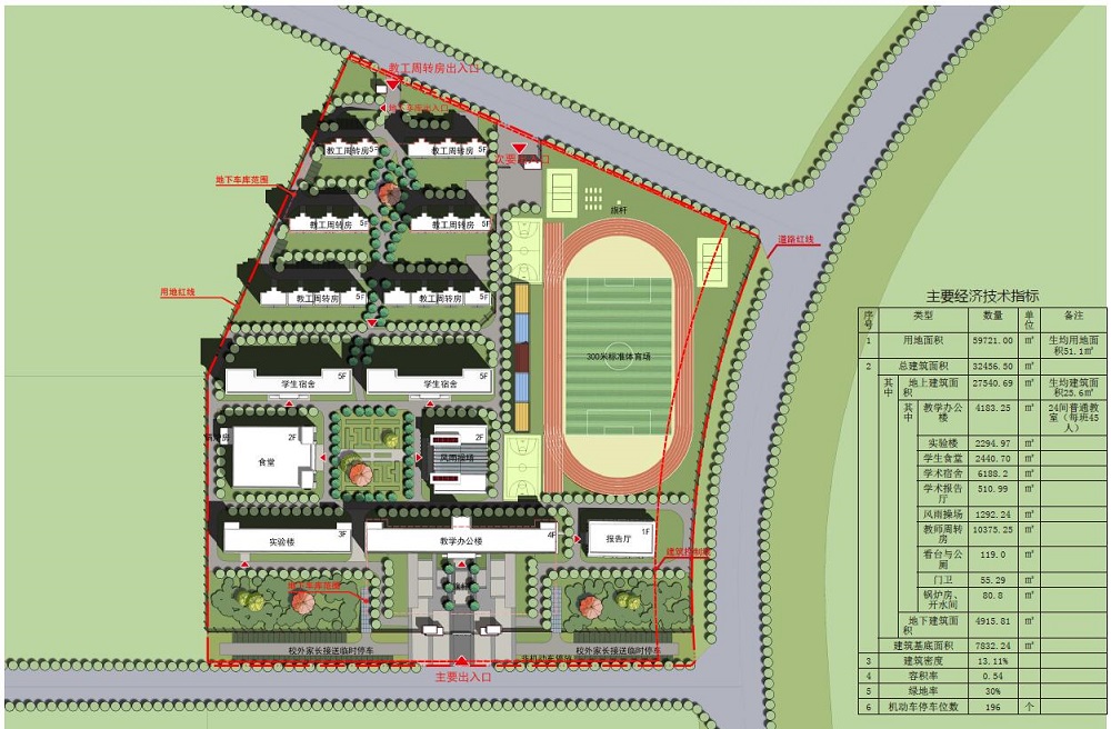 ???本項目用地位于日喀則市經(jīng)濟(jì)開發(fā)區(qū),辦學(xué)規(guī)模為24班的小學(xué),包括教學(xué)樓、實驗樓、食堂、風(fēng)雨操場、宿舍樓等建筑。規(guī)劃建設(shè)用地為59721㎡,建筑總面積為32456.5㎡,其中地上建筑面積27540.69㎡,地下建筑面積4915.81㎡。建筑密度13.11%,容積率0.54,綠地率30%,機(jī)動車停車位數(shù)196個。南側(cè)、東側(cè)、北側(cè)為規(guī)劃道路,西側(cè)緊鄰規(guī)劃曲布幼兒園和園丁苑。