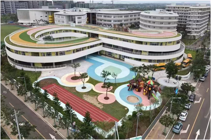 學(xué)校秉承國際化設(shè)計理念,集智慧化學(xué)習(xí)空間、舒適性生活空間、多層次活動空間于一體,涵蓋高級中學(xué)與幼兒園,配套建設(shè)多功能體育設(shè)備和開放式場館、“高顏值”教室、圖書館、多功能禮堂等9棟單體建筑,打造出友好的學(xué)習(xí)氛圍、智能化起居環(huán)境、營造了精彩的生活社區(qū)??晒?728個高中學(xué)位與450名幼兒學(xué)童。