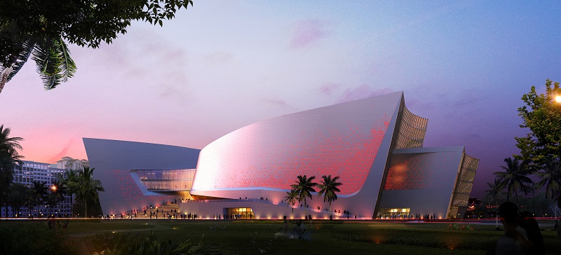 海南省非物質(zhì)文化遺產(chǎn)展示中心項目位于海南省??谑协偵絽^(qū),總建筑面積52180平方米,建筑高度42米,是海南省十大重點公共文化工程首批落地實施項目。該項目為瓊劇院、非遺博物館及藝術中心三大功能合一的文化綜合體,主要設有大劇場、實驗小劇場、綜合排演廳、黎錦館、非遺陳列館、非遺體驗傳習館、非遺傳承人技藝活態(tài)展示館、藝術中心等多種類型公共文化設施。