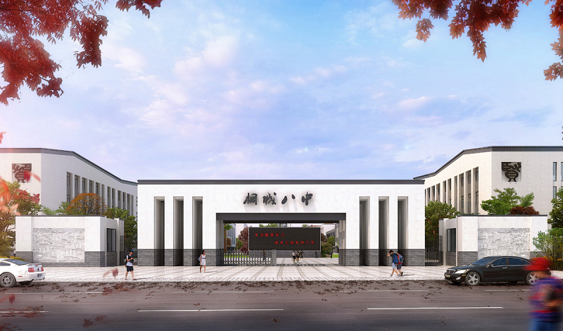 建筑理念——校園的歷史原型:“辟雍”體現(xiàn)了“天圓地方”的中國傳統(tǒng)宇宙觀。整個(gè)校園立面材質(zhì)以黑、白、灰為基調(diào),取徽派建筑之精華、融合現(xiàn)代建筑設(shè)計(jì)手法,脫離于傳統(tǒng),不失其韻味。中心造型力求現(xiàn)代、空靈、內(nèi)蘊(yùn),輪廓線平緩、舒展,塑造出桐城市第八中學(xué)的現(xiàn)代風(fēng)貌。布局上,中心雕塑作為整體校園的核心,圍繞中心雕塑設(shè)置行政綜合樓、高一、高二教學(xué)實(shí)驗(yàn)樓和高三教學(xué)樓。