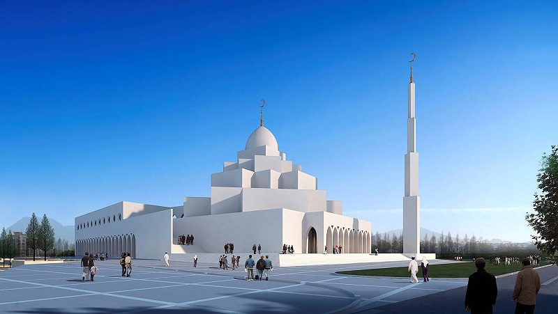 鄂爾多斯東勝區(qū)清真寺位于城市主干道東南,清真寺的要素【“米哈拉布(凹壁)”、“齊布拉墻”、“禮拜殿”、“庭院”、“環(huán)廊”。